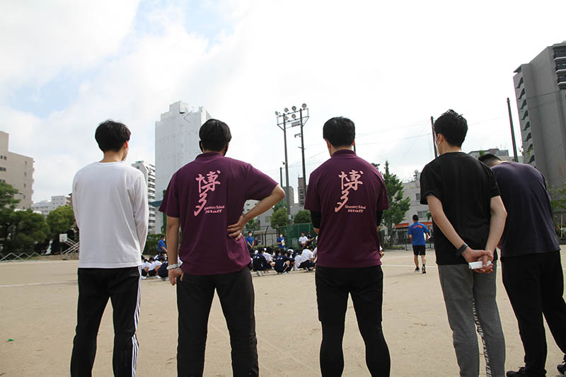 試し舁きが終わり、閉会式を行ってこの日の一連の授業はすべて終了しました。博多中の山笠は飾りつけが行われ、来週末の体育祭で2年ぶりに山舁きの雄姿を披露することになります。