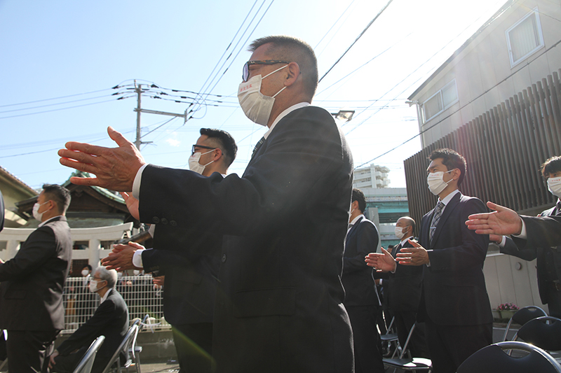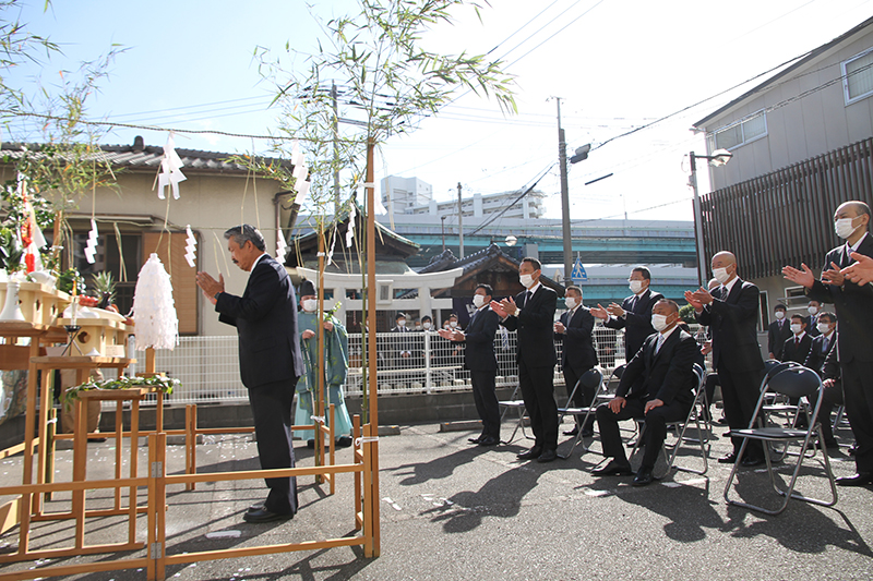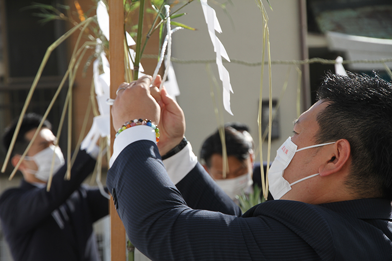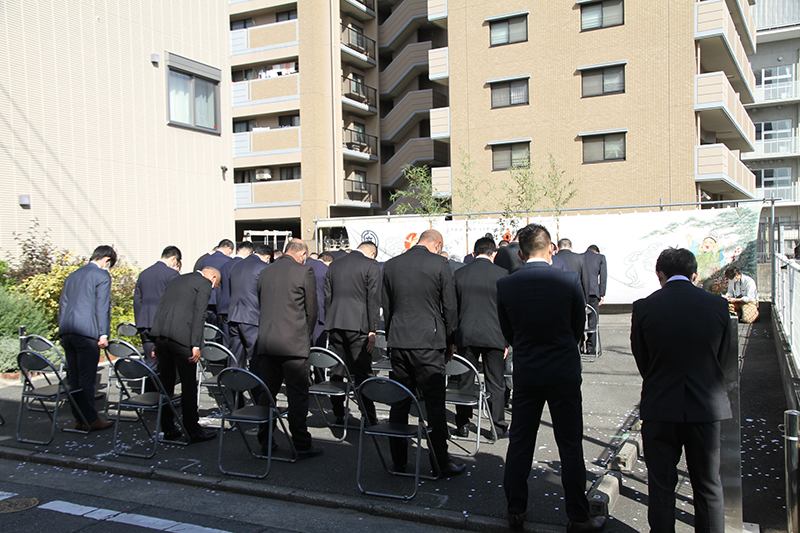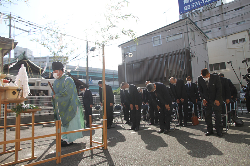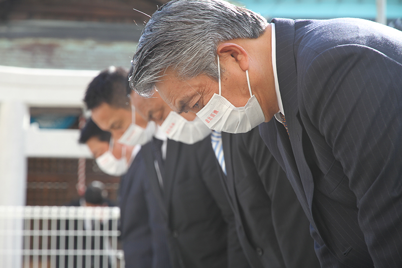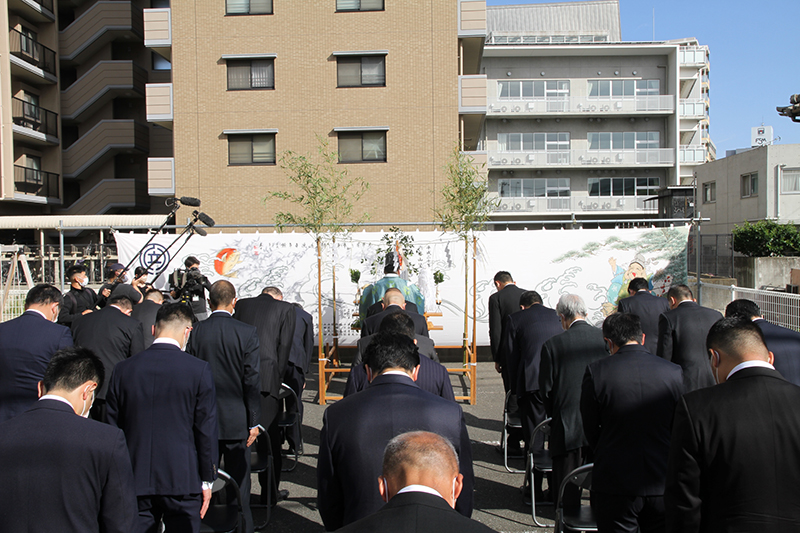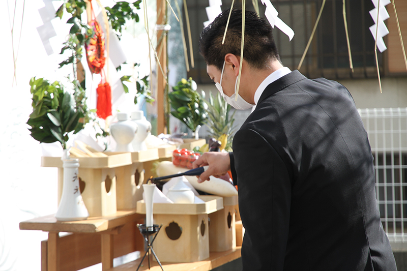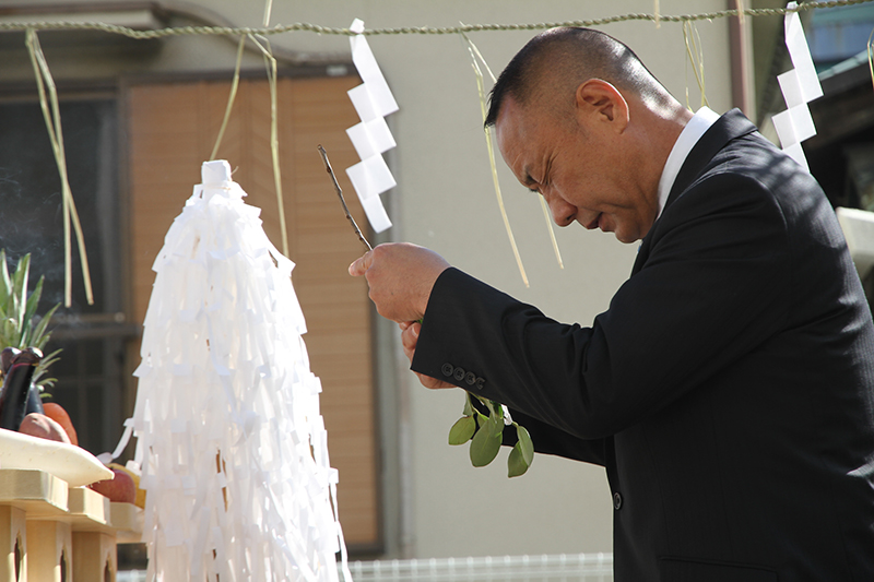 参加者もそれに続き拝礼を行い、無事奉納を祈願。地鎮祭の神事は無事終了しました。