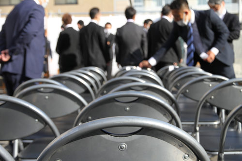 今日の神事は眩しい日差しでありながら涼しい風も吹く初夏の気持ちの良い天気の下で行われます。参加者は全員恵比須流の名前が入ったマスクを着用し、手指消毒や椅子の間隔などを広げるなど感染症対策を万全にしたうえでの開催です。2020年、2021年と比べて少しずつ椅子の数も増えており、少しずつ”博多の日常”が戻ってきてるのを実感しました。