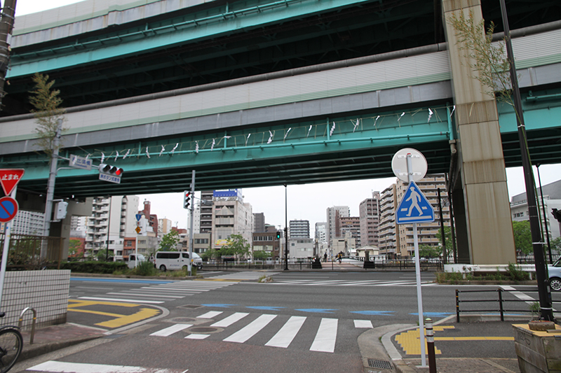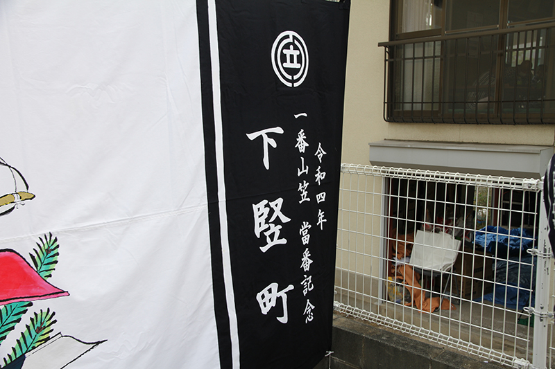 今年の当番町は大津町。山小屋の場所は、恵比須橋を挟んでちょうど恵比須流の対岸側となります。新三号線に面した辻に注連縄が翻ります。