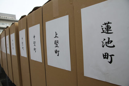 神事後、各役員には瀬戸総務より祓い清めたばかりの役手拭が手渡されました。
