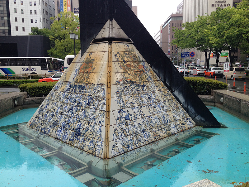 博多駅の筑紫口がリニューアルしていますが、以前ロータリー部分に設置されていた西島伊三雄さんが手掛けた噴水の山笠&松囃子のモニュメントがなくなってしまいました。