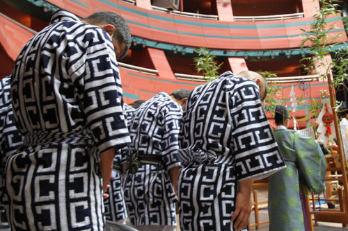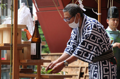 午前9時より、サンプラザステージにて小屋入りの神事を執り行いました。
