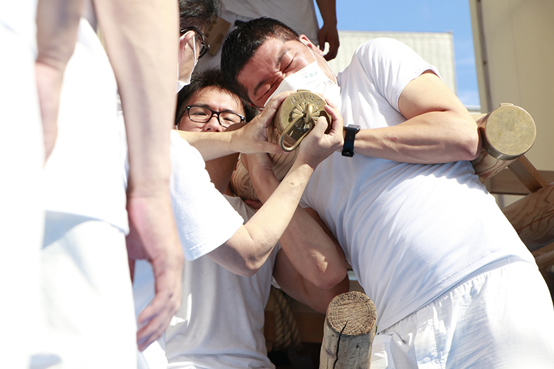 威勢のいい「オイサ」の声を川沿いに響き渡らせた男たちは、汗だくのまま息を弾ませて手一本を入れ、3年ぶりの棒の感触ついての山舁き話に花が咲きせました。