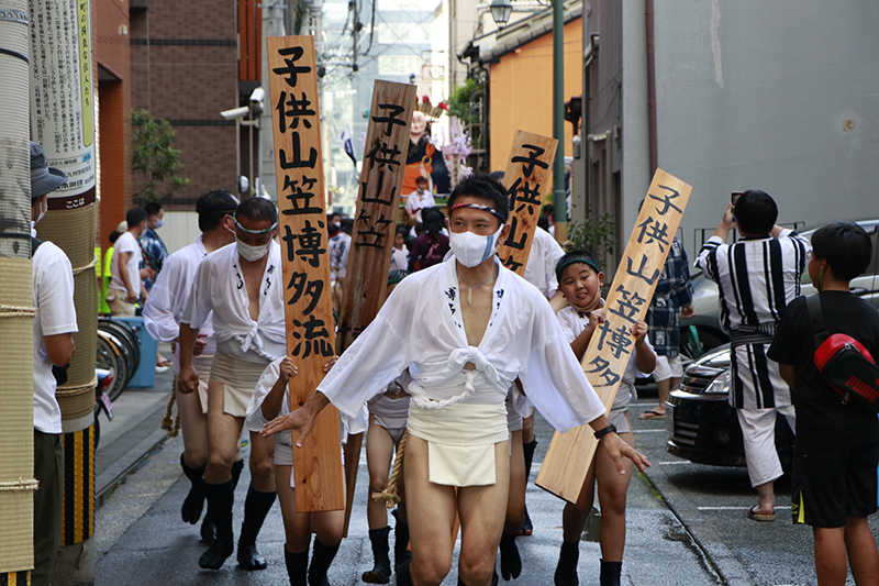 そして、こちらも3年ぶりとなります博多小の子供山笠。今年は感染予防対策と安全対策を施して、日程を2日間にした山舁きスケジュールです。
