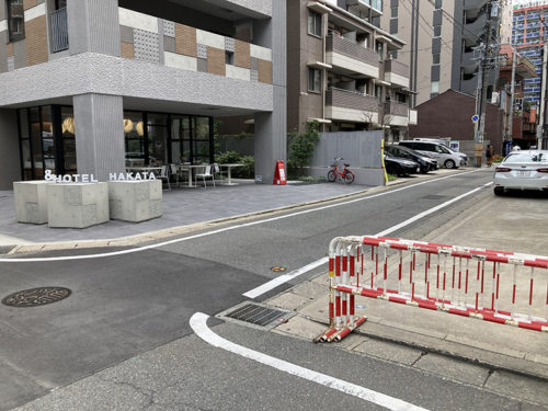旧東町筋を北上すると、次は博多の大動脈である大博通りへ。道幅が広くて走りやすいけど山笠の進行軌道が蛇行してスピードが落ちやすいエリアで、その大博通りを南下していきます。