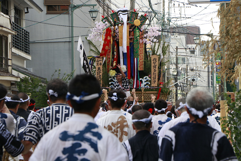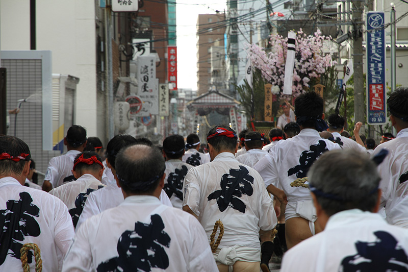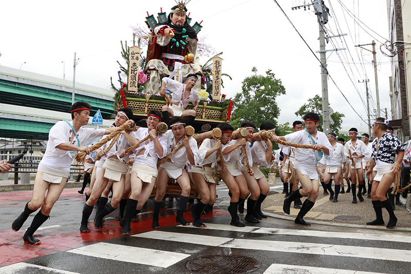 午後2時に入ると、各流は舁き山を冷泉公園の山列まで運び入れるため、各山小屋を舁き出します。