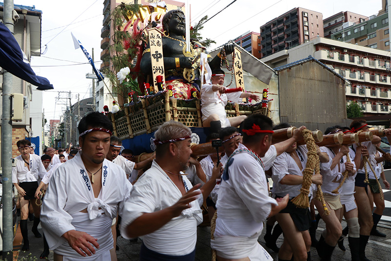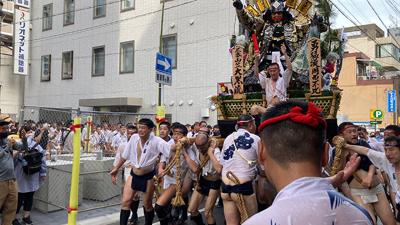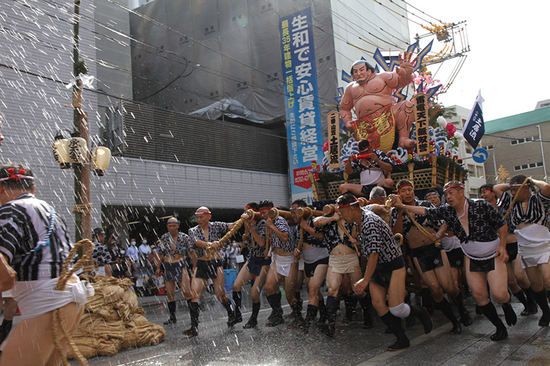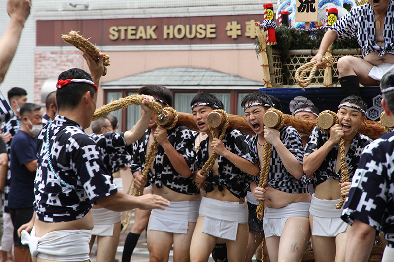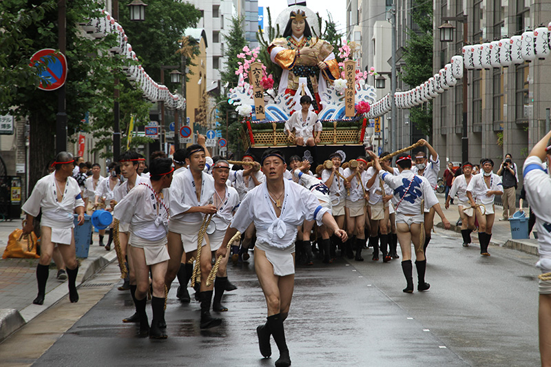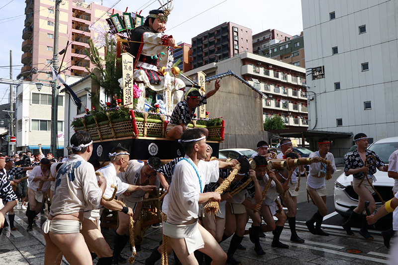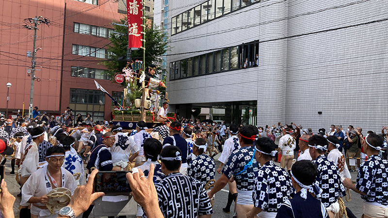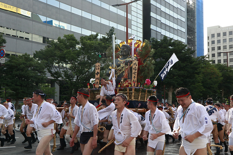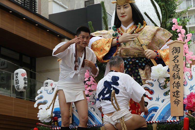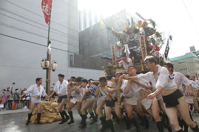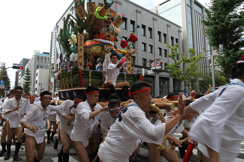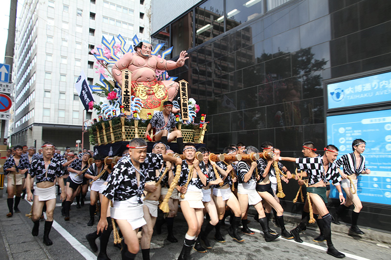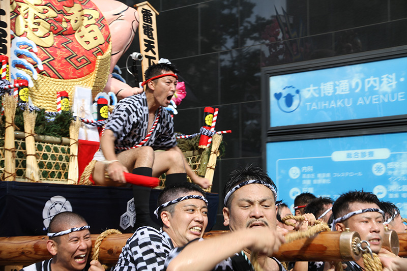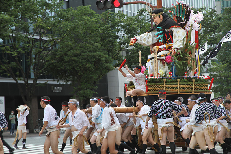 この2年間で博多の町の風景も変わりました。旧西町筋の難所と呼ばれた場所には、ビルの代わりにビジネスホテルが建ち、舁き山は姿を変えた新しい難所を直角に曲がっていきます。