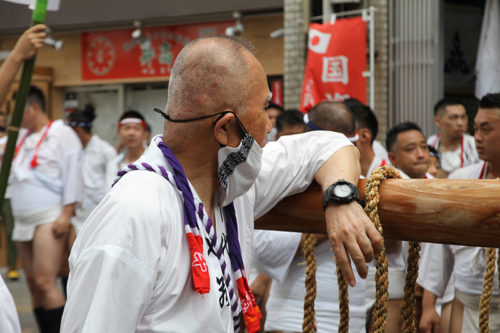 追い山ならし廻り止めの風景もこの2年間で変わりました。奈良屋ビルからスーパに変わりましたが、舁き手達を待つ風景は変わりません。櫓で招き旗が振られ、それに鼓舞されるかのように舁き山はこの場所を目指します。