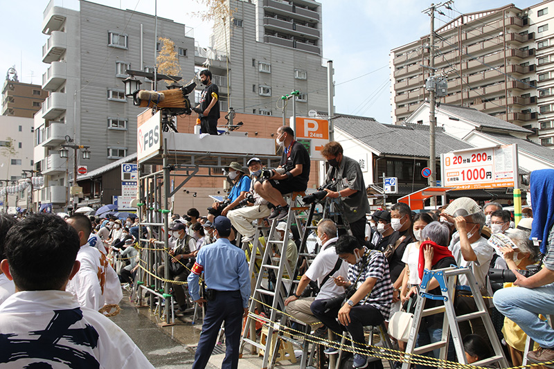 各舁き山前では各町の手打ちが始まり、刻一刻と舁き出し時間である15時59分に向かって進んでいきます。