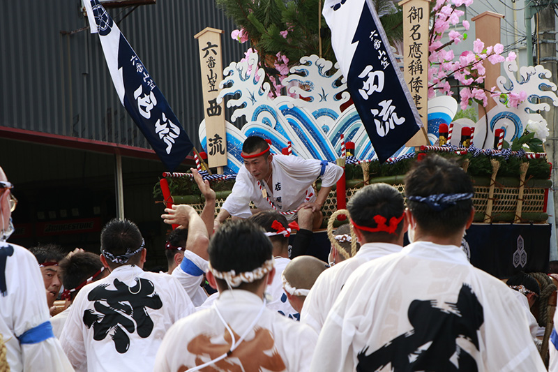 午後2時45分、千代流が山列に入り、七流全ての舁き山が集結しました。