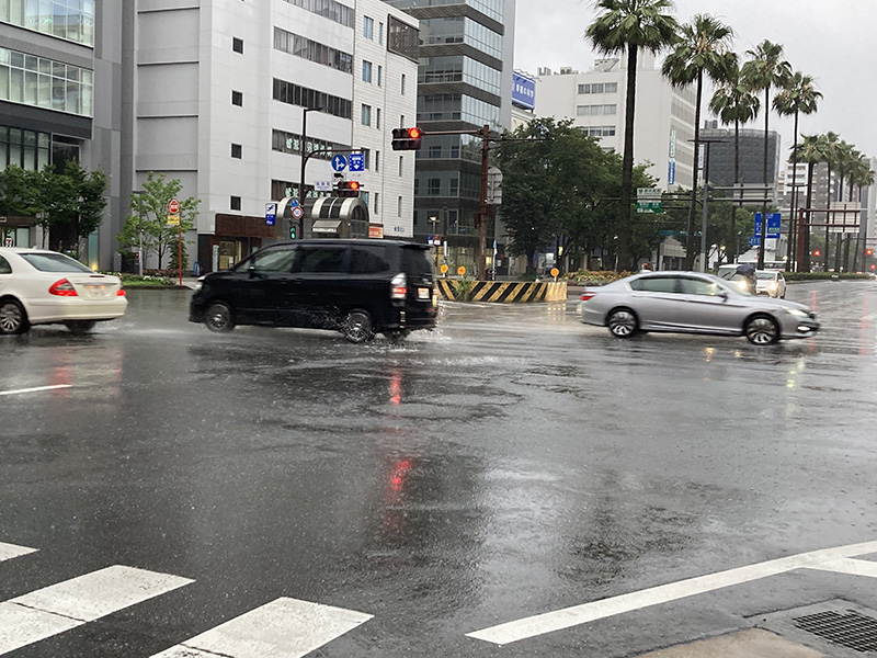 活発な前線の影響で九州各地で大雨が降り各地で甚大な被害が発生しています。博多でも深夜から降り始めた雨は夜が明けてもやむことはなく、早朝午前6時台になっても雨が強く地面を叩き付けるような悪天候。7月3日(月)は豪雨の中での一週間のスタートとなりました。
