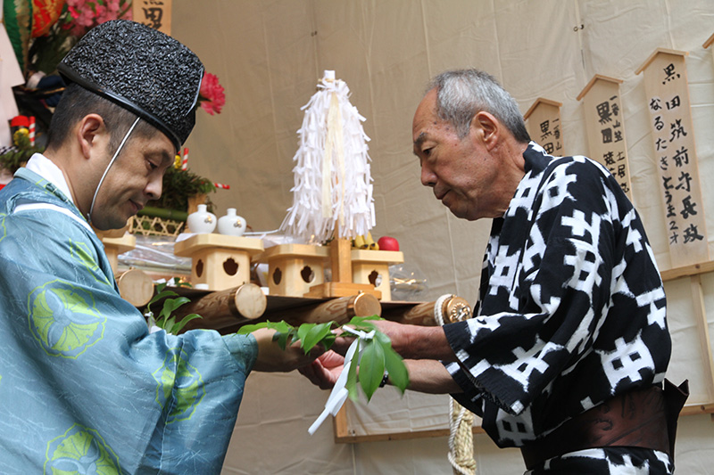 最後に山口総務が玉串を捧げ、無事出来上がった舁き山笠を前に7月15日までの無事奉納を祈願しました。