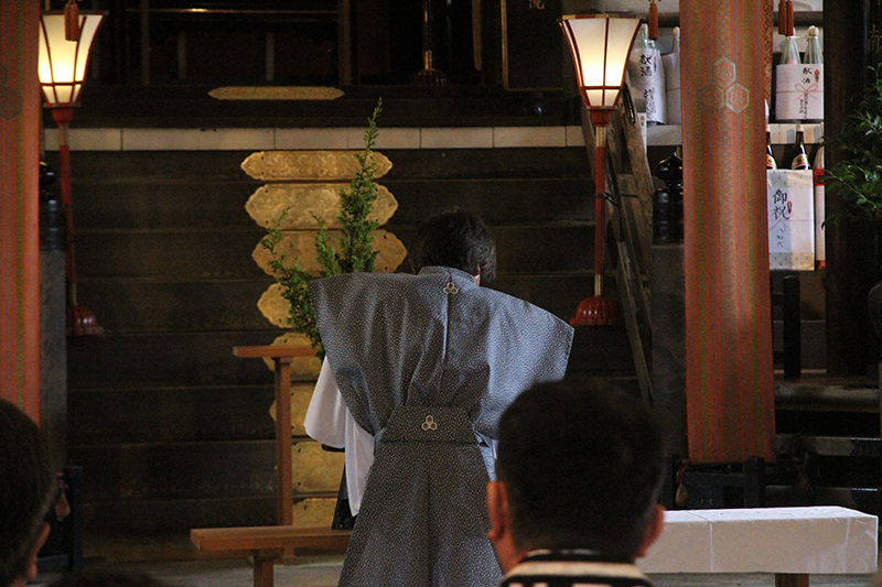 7月10日は流舁きの日ですが、本日より山笠が動く事から無事奉納を祈願するため、神に華とお茶を献上奉納する「献華(けんげ)献茶式」が櫛田神社拝殿にて行われました。