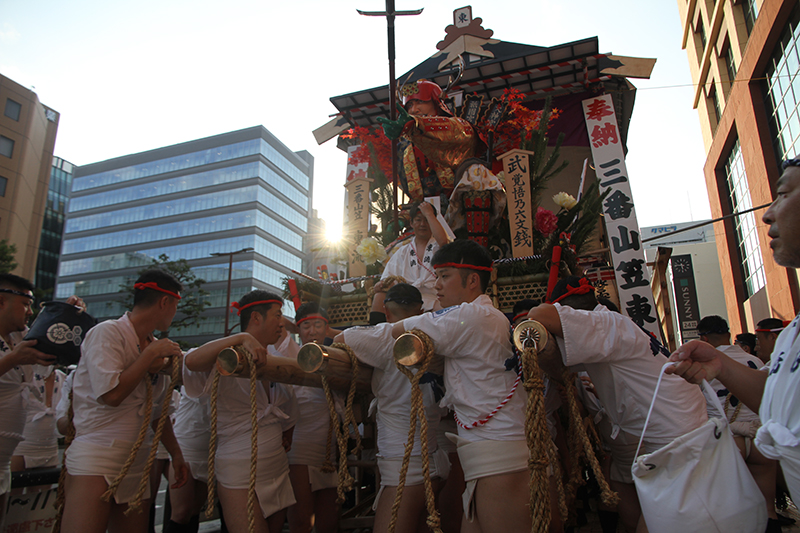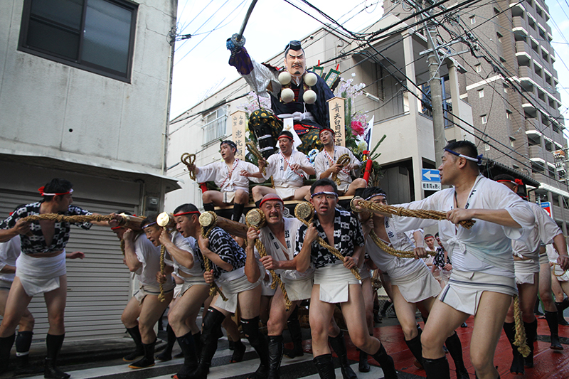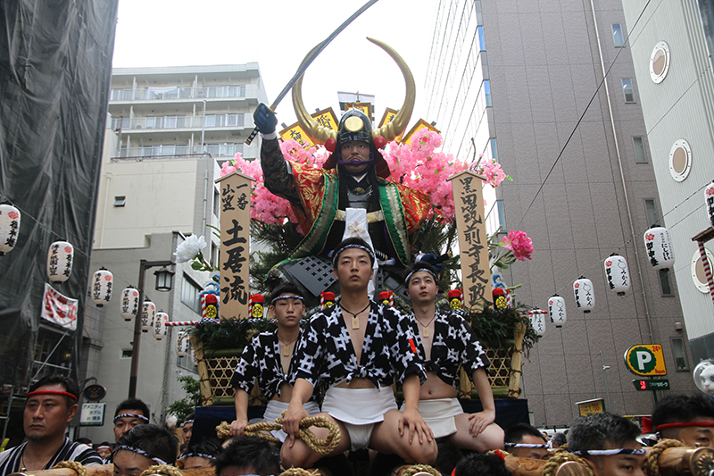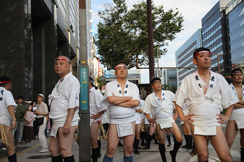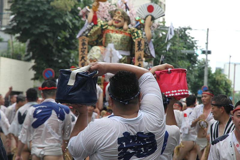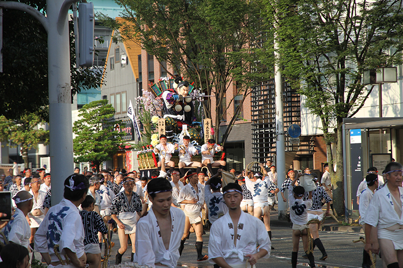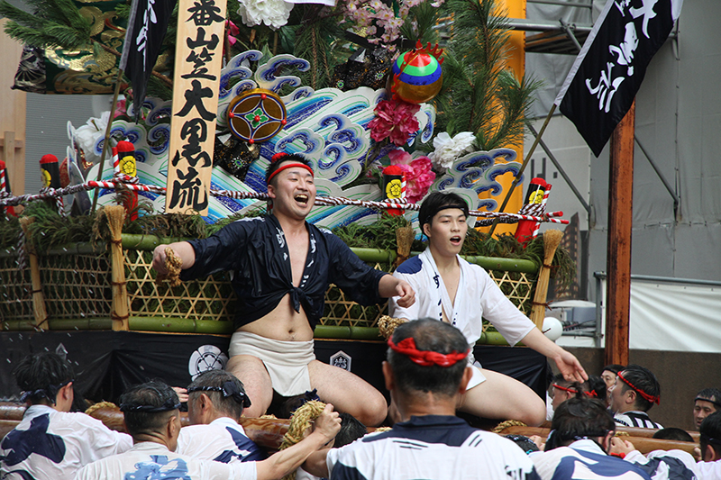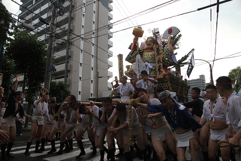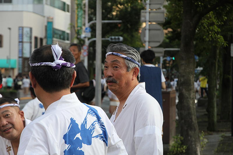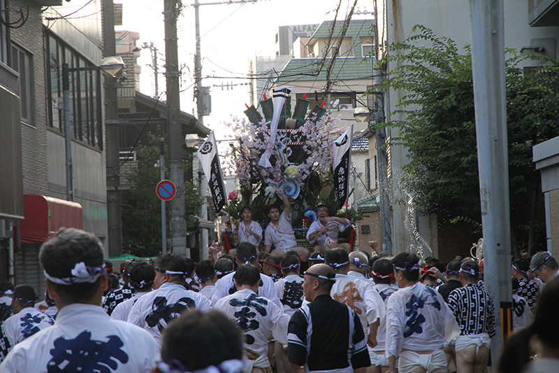 午後5時になると、今年は明治通り沿いに山小屋を並べる土居流、大黒流、西流の三流が舁き出しました。