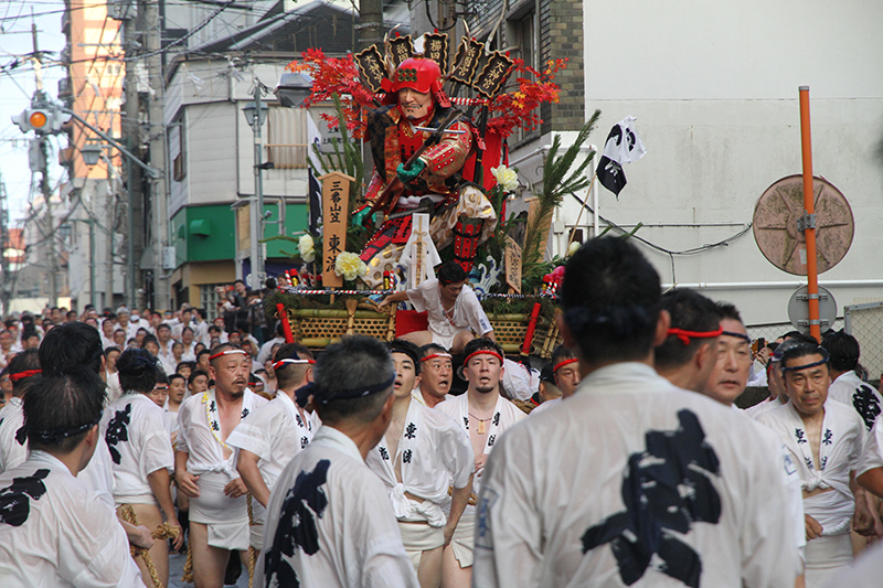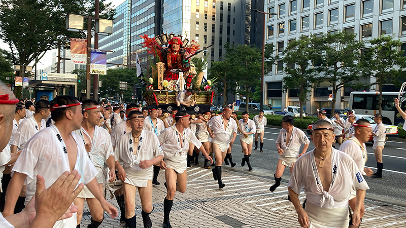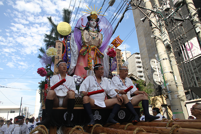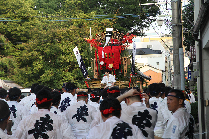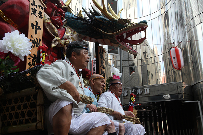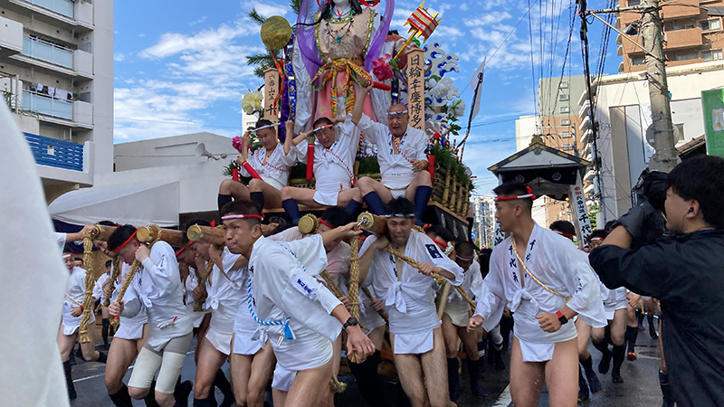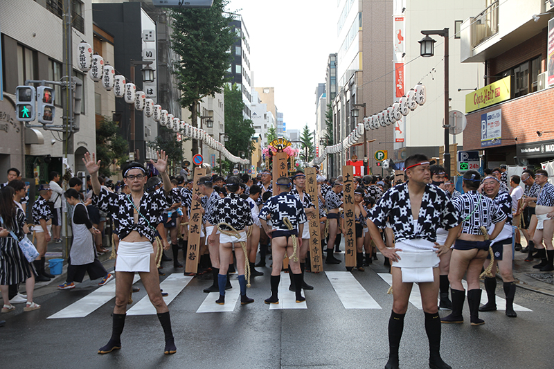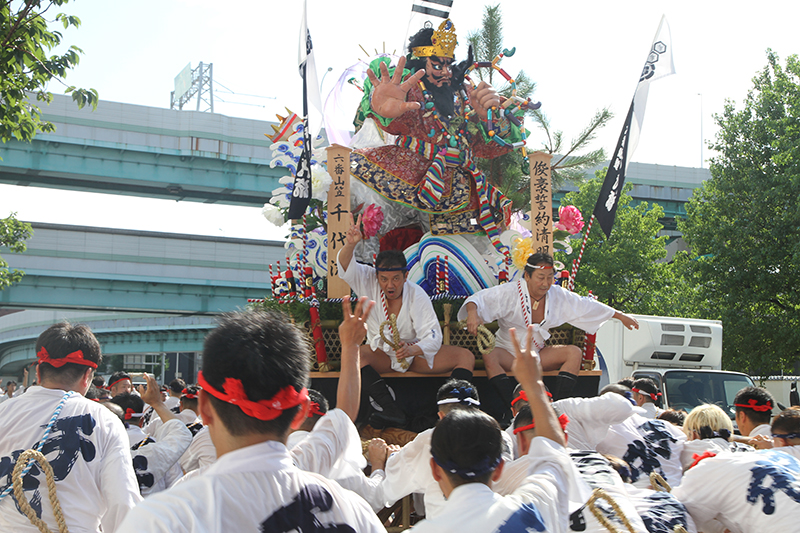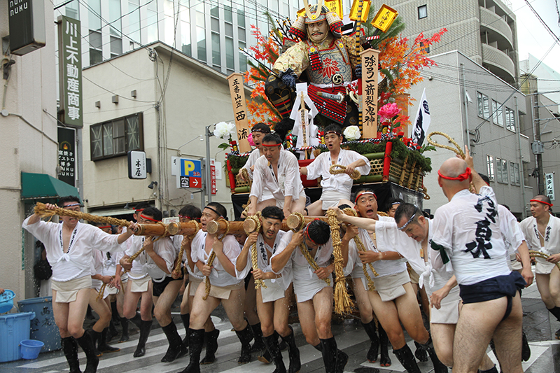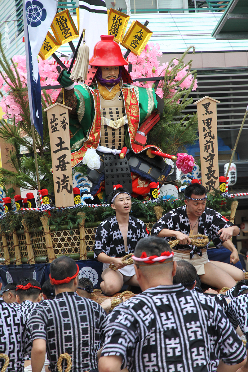 午後5時になると、今年は明治通り沿いに山小屋を並べる土居流、大黒流、西流の三流が舁き出しました。