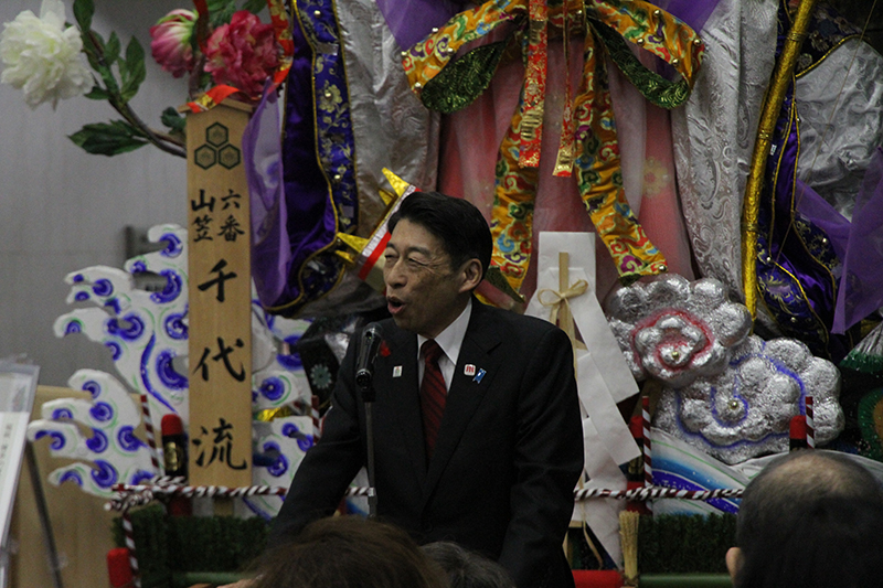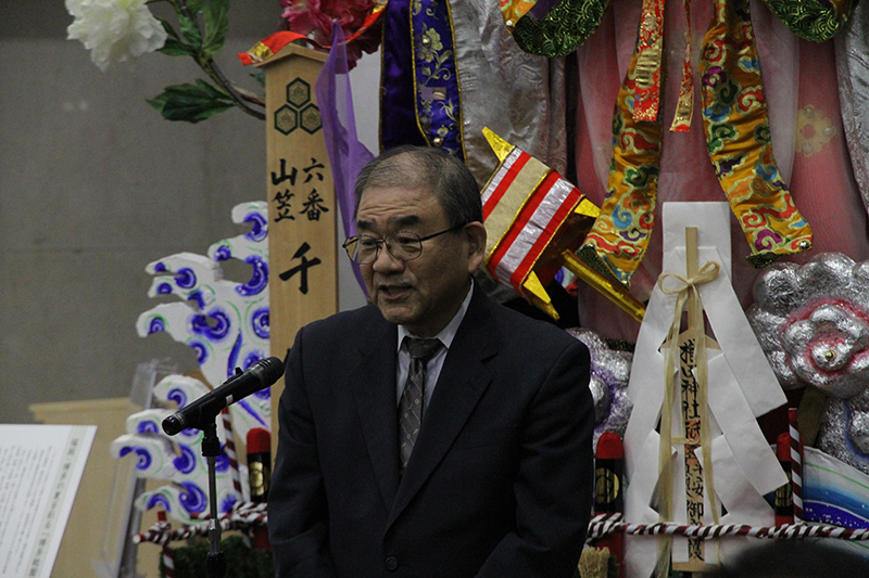 また、今年の千代流総務を務めた川口氏は「千代流の舁き山笠の展示を機に、県民の皆様に博多祇園山笠を支えてくれている人形師や山笠大工の方々の熱い思いや情熱を感じとっていただけたら」とあいさつしました。