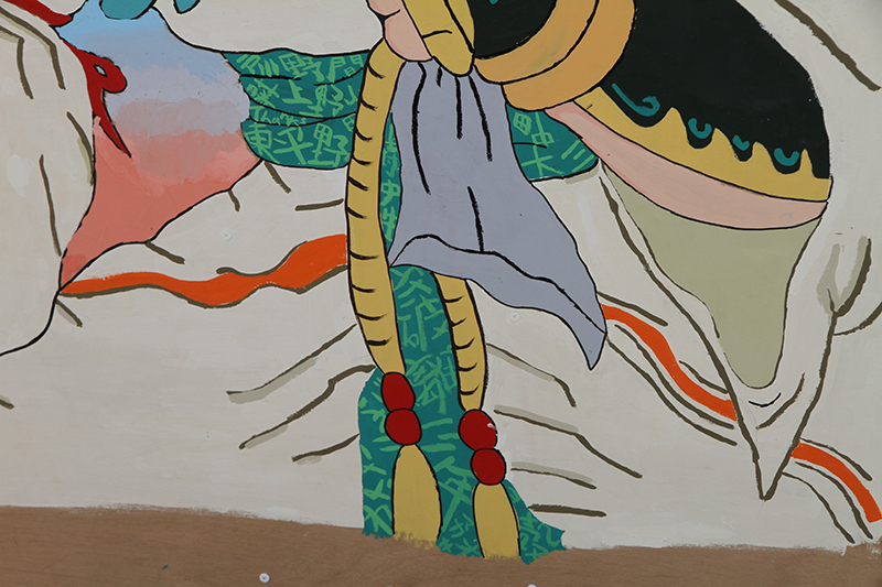 絵に描かれた帯の模様をよく見ると担任教師の名前などがあしらわれているようで、生徒達ならではの隠しネタにもほほえましく感じます。