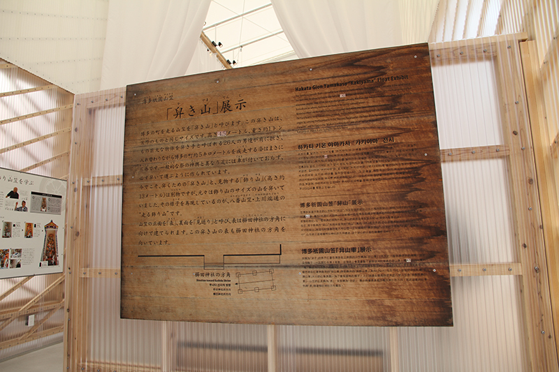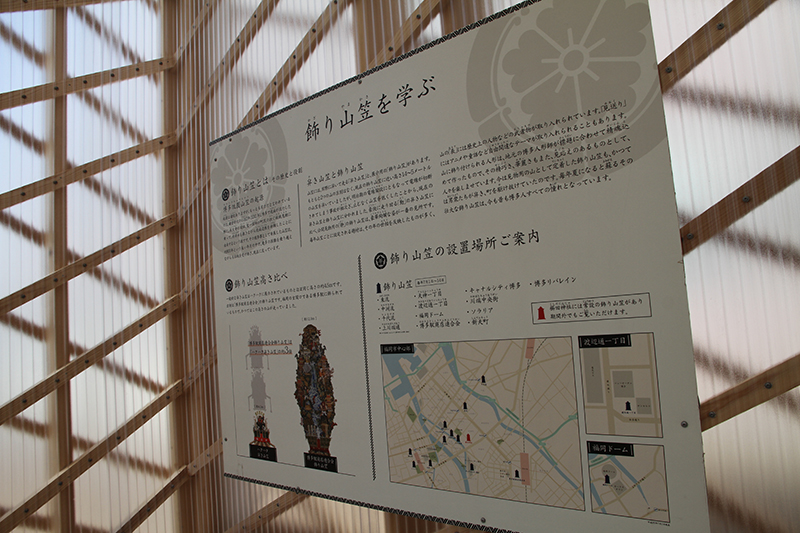 山小屋内には山笠を説明したパネル展示もあるので、明太子の歴史や工場見学に来た人も、山笠の歴史や文化に分かりやすく接しやすくなっています。