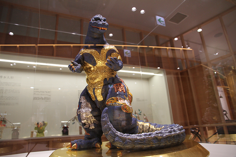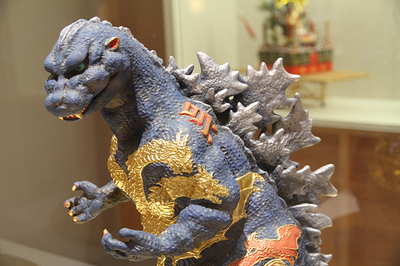 また、博多人形やミニ山笠も展示されています。目を引くのは中村弘峰人形師が製作した、あの話題になった博多人形の手法で作ったゴジラ『追憶の呉爾羅』も展示されており、ゴジラや特撮ファンの方にも是非見てもらいたい展示です。