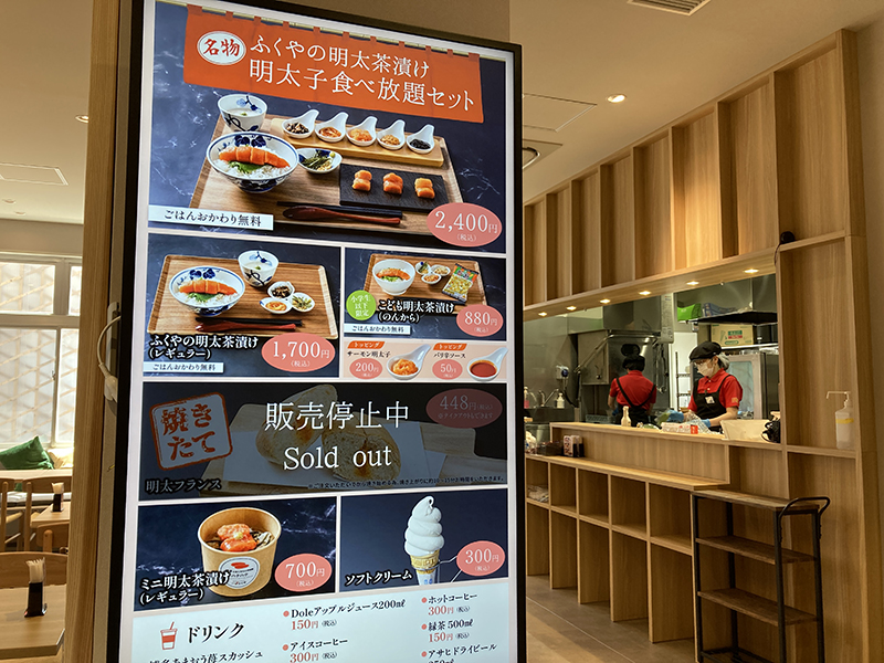 イートイン施設の「ハクハクカフェ」では、明太子とごはんがオーダーできます。「ふくやの明太茶漬け 明太子食べ放題セット」は、なんと「明太子食べ放題」。しかも、ごはんおかわりは無料! 博多の人なら延々とごはんが楽しめるのでは!?