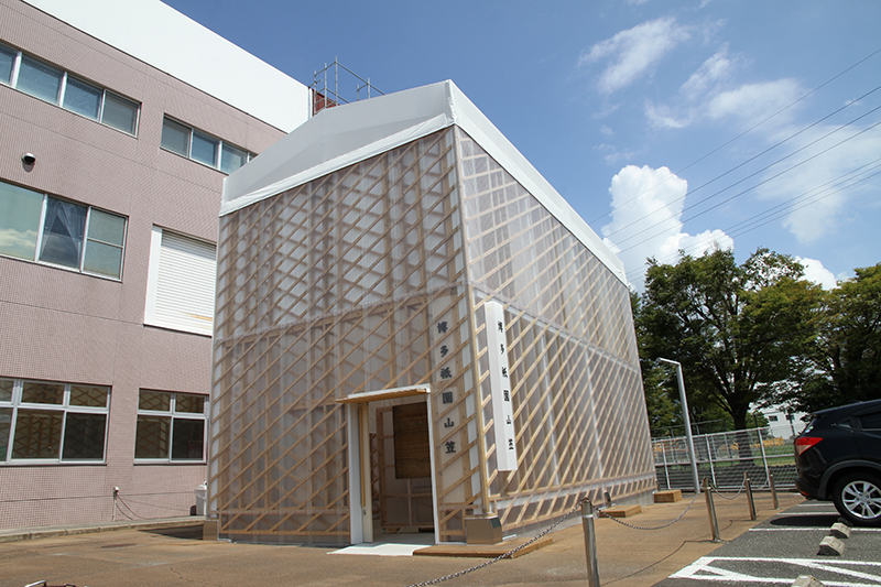 もう一つは、九州産業大学と同じ東区にある、明太子製造メーカーふくやの明太子工場の「ふくや味の明太子工場 ハクハク」です。2013年にオープンした「博多の食と文化の博物館ハクハク」は、2025年夏にリニューアル事業の一環で施設名を新たに再スタート。そのリニューアルに合わせ、展示していた舁き山笠と山小屋もリニューアル&メンテナンスを行い、先日再公開が始まりました。
