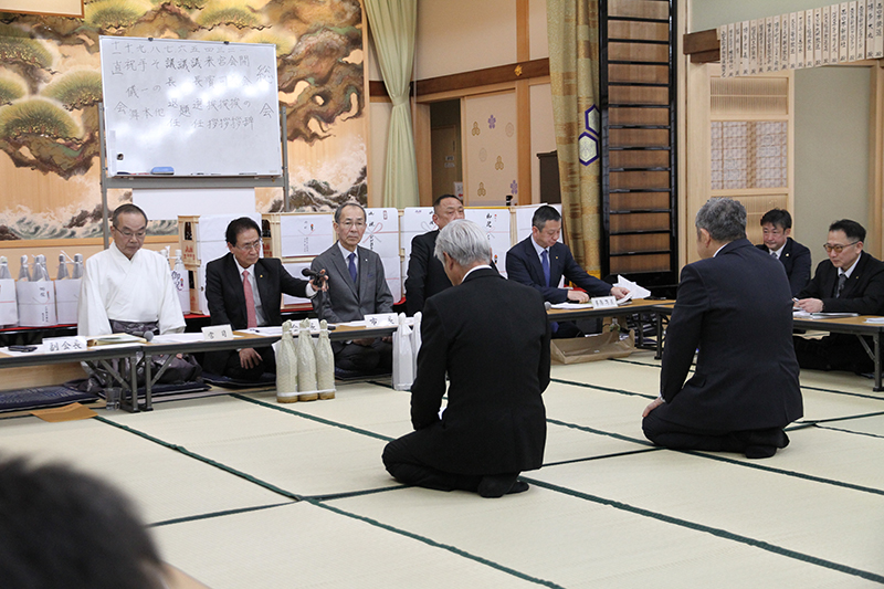 すべての議題が承認され、新年総会は無事終了。最後に皆で博多手一本を入れ、全員一致で決議した内容を了承しました。