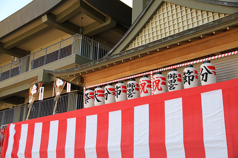 清道には豆まきの舞台が出来上がっており、あとは当日を迎えるのみとなっています。